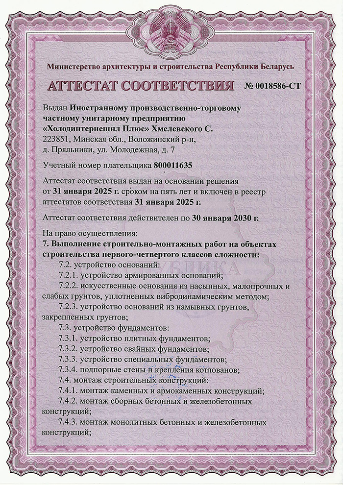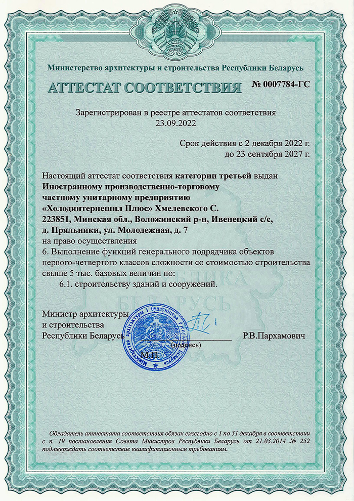 ИП "Холодинтернешнл Плюс" осуществляет комплексный инжиниринг для объектов промышленного назначения в сфере сельского хозяйства и агропромышленного комплекса. В штате компании трудятся опытные профессионалы, есть собственное проектное бюро. Обладаем разрешительной документацией, дающей право на проектирование и возведение объектов различной сложности – от I до II категории, а также на создание необходимой проектной документации.